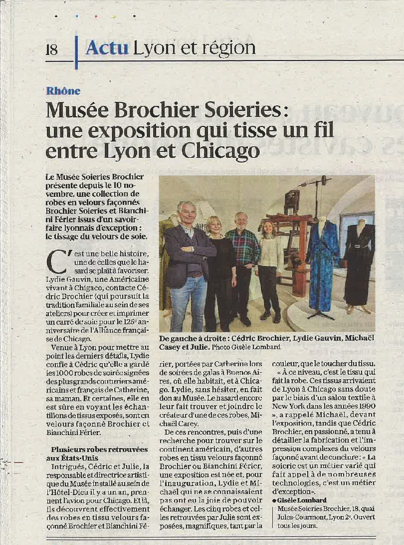 Le Musée Soieries Brochier présente à partir du 10 novembre 2023 l’exposition Une collection Velours façonnés, Brochier Soieries et Bianchini Férier. L’histoire commence en 2022 Lorsque Cédric Brochier est contacté par Liliane Gaubin pour la réalisation d’un...